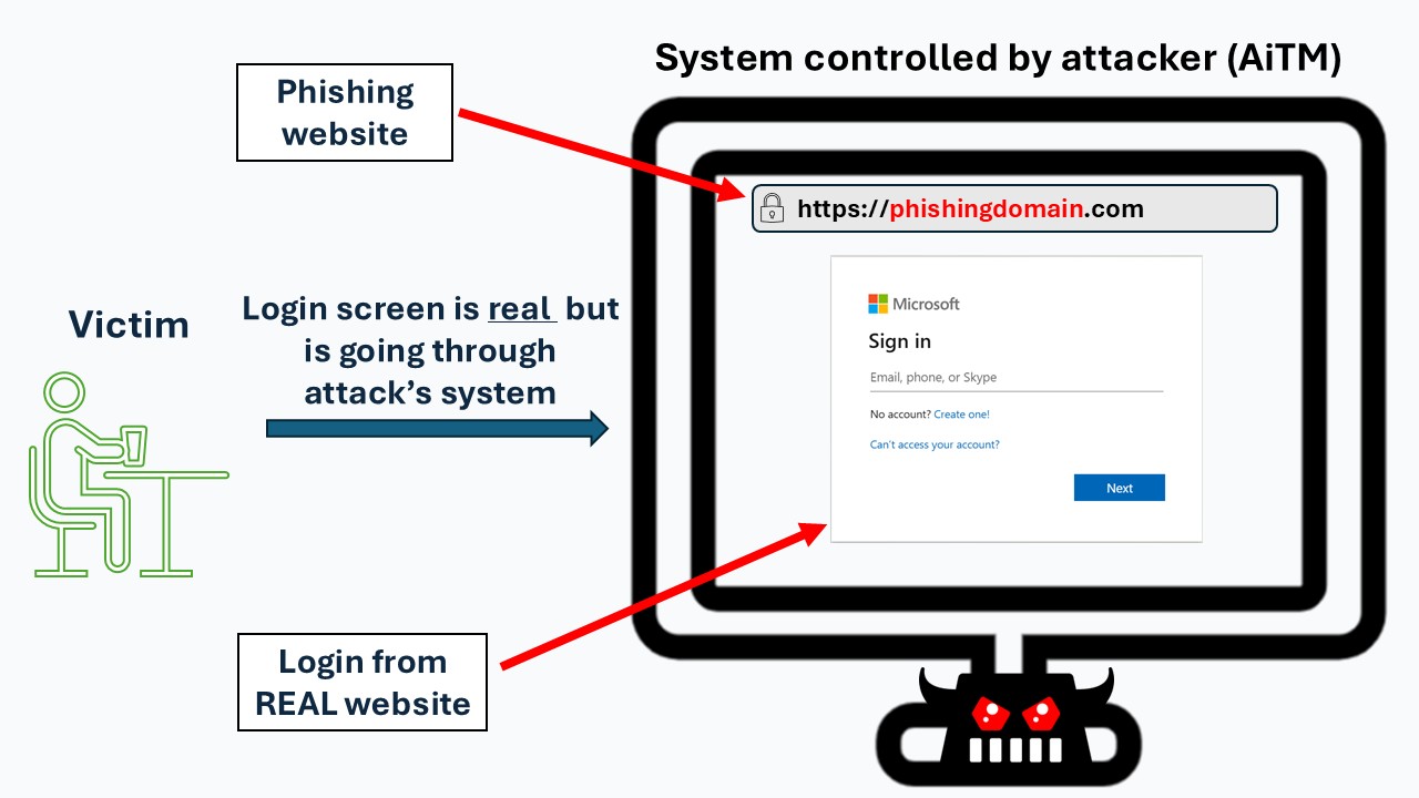 Adversary-in-the-Middle (AiTM) phishing is a technique that allows hackers to compromise accounts — even those protected by multi-factor authentication (MFA).