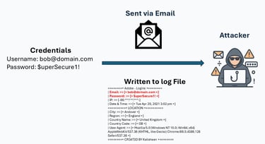 The phishing platform captures the credentials—either logging them on the attacker’s server or emailing them to the attacker in real time.
