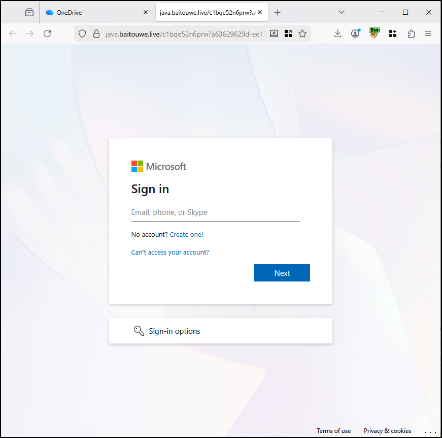 The primary stage of the phishing attack is the Adversary-in-the-Middle (AiTM) phishing page.