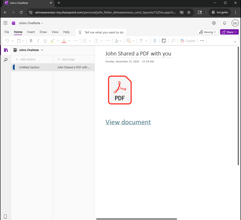 The content is shared from a real Microsoft 365 account—often one that has been compromised and may belong to someone the recipient knows—and uses Microsoft’s native sharing and notification features. Because the access flow follows normal Microsoft workflows, it appears familiar and trustworthy.